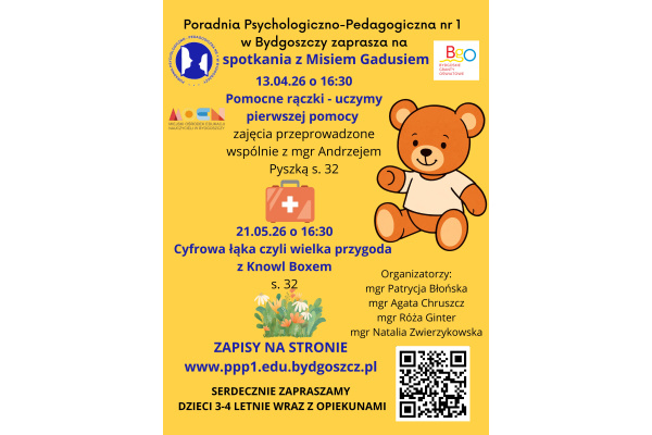 Serdecznie zapraszamy dzieci w wieku 3-4 lata na kolejną edycję "Spotkań z Misiem Gadusiem".
