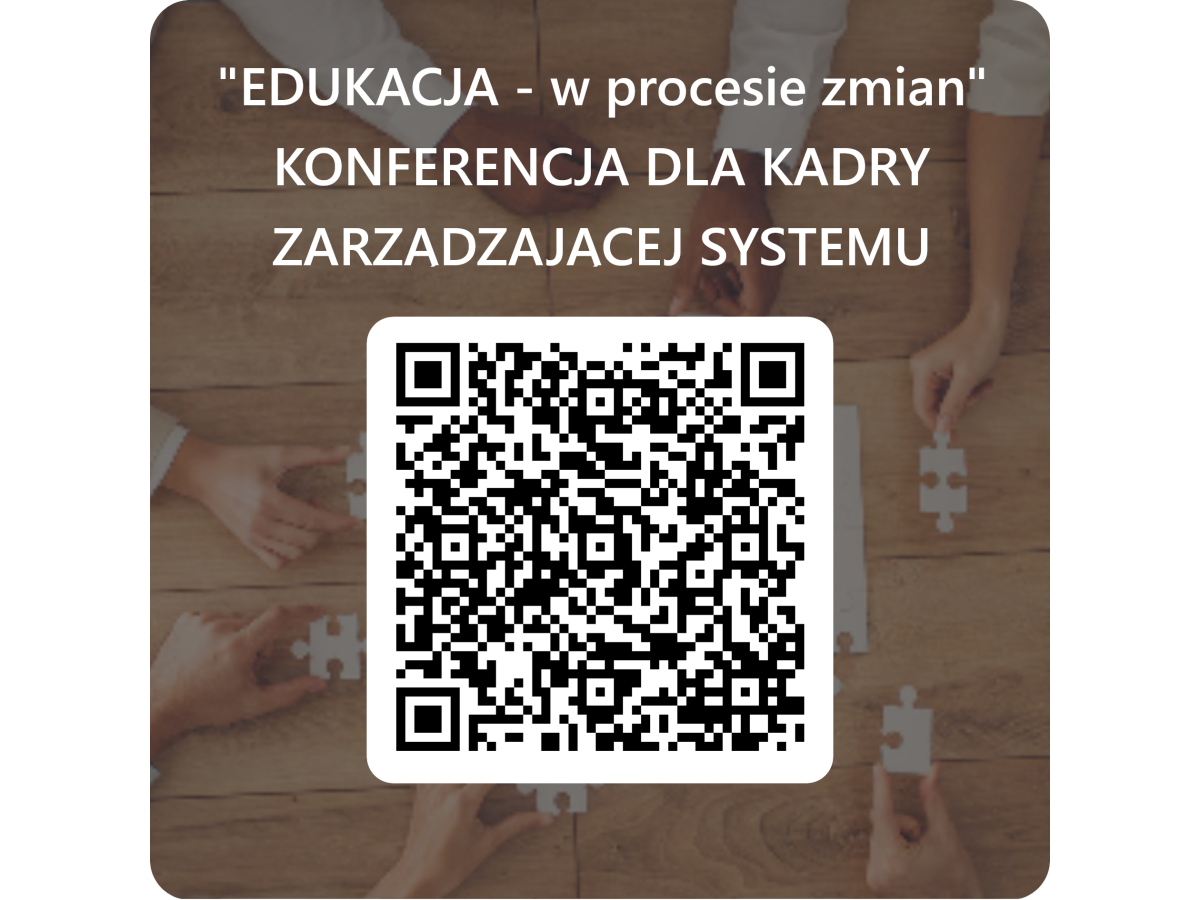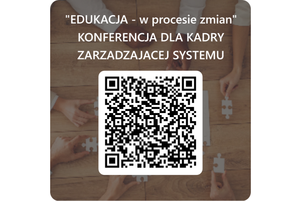 Zapisy: porzez formularz zgłoszeniowy: "EDUKACJA - w procesie zmian" KONFERENCJA DLA KADRY ZARZĄDZAJĄCEJ SYSTEMU OŚWIATY – Wypełnij formularz lub skanując kod QR dołączony do niniejszej wiadomości.